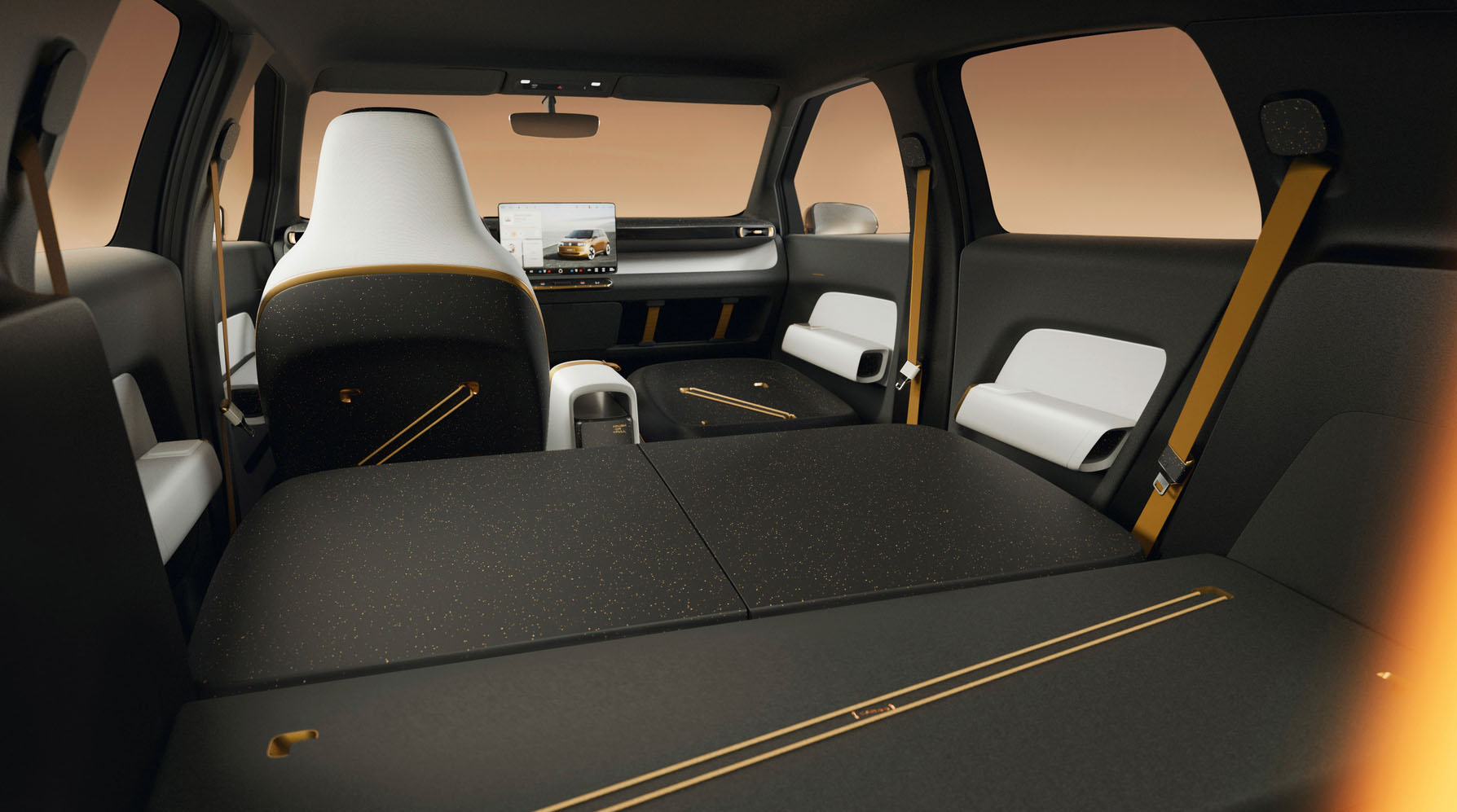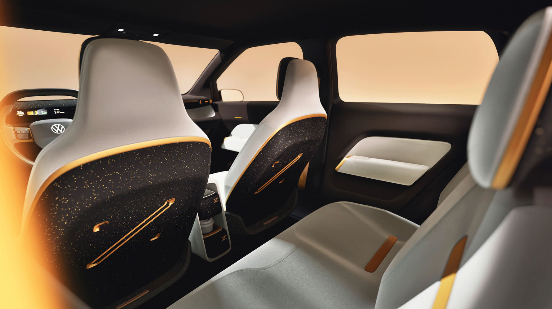 Інтер'єр ID. Every1 вирізняється простим дизайном із великим сенсорним дисплеєм по центру передньої панелі. Примітно, що під ним знаходяться фізичні кнопки для управління температурою, обігрівом і гучністю. Передній пасажир має доступ до змінюваної багатоцільової панелі, до якої можна прикріпити різні предмети, як-от планшет або полицю. Знімний Bluetooth динамік розташований між водієм і пасажиром.