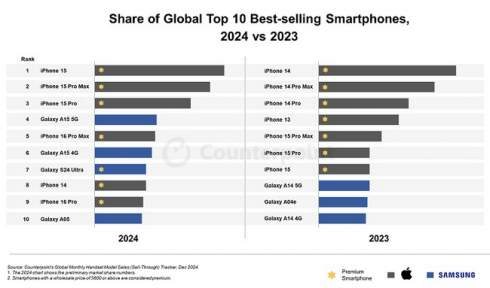 Примітно, що у 2023 році смартфони від Apple посідали перші сім рядків топа продажів, а в лідерах були аналогічні моделі iPhone, але 14-го покоління.