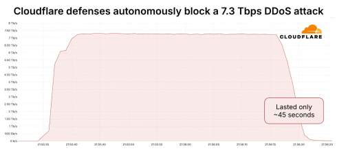 Компанія з інтернет-безпеки Cloudflare заявила про відбиття рекордної DDoS-атаки. На адресу одного з її клієнтів надійшло 7,3 Тбіт/с небажаного трафіку, загальним обсягом 37,4 ТБ.