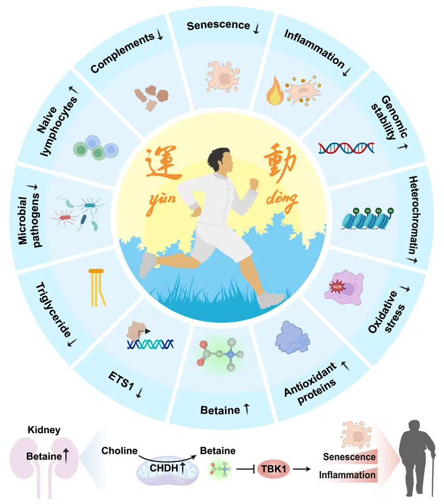 Результати останніх досліджень демонструють, що амінокислота бетаїн, яка виробляється у нирках, може відтворювати деякі переваги від фізичних вправ та сповільнювати старіння.
