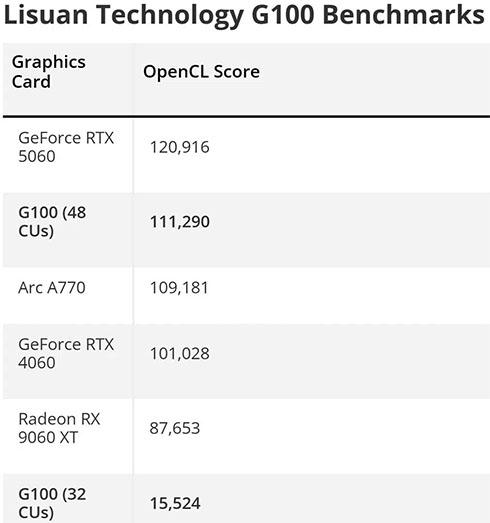 Lisuan G100: китайська відеокарта випередила NVIDIA RTX 4060