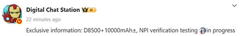 Авторитетний інсайдер Digital Chat Station повідомив, що перший смартфон Honor з Dimensity 8500 може отримати акумулятор ємністю 10 000 мАг. За його інформацією гаджет досяг стадії тестування NPI (New Product Introduction), що свідчить про завершальний етап роботи над ним і швидку презентацію. Очікується, що новинка від Honor, назва якої поки невідома, вийде після Redmi Turbo 5 у грудні або в січні 2026 року.