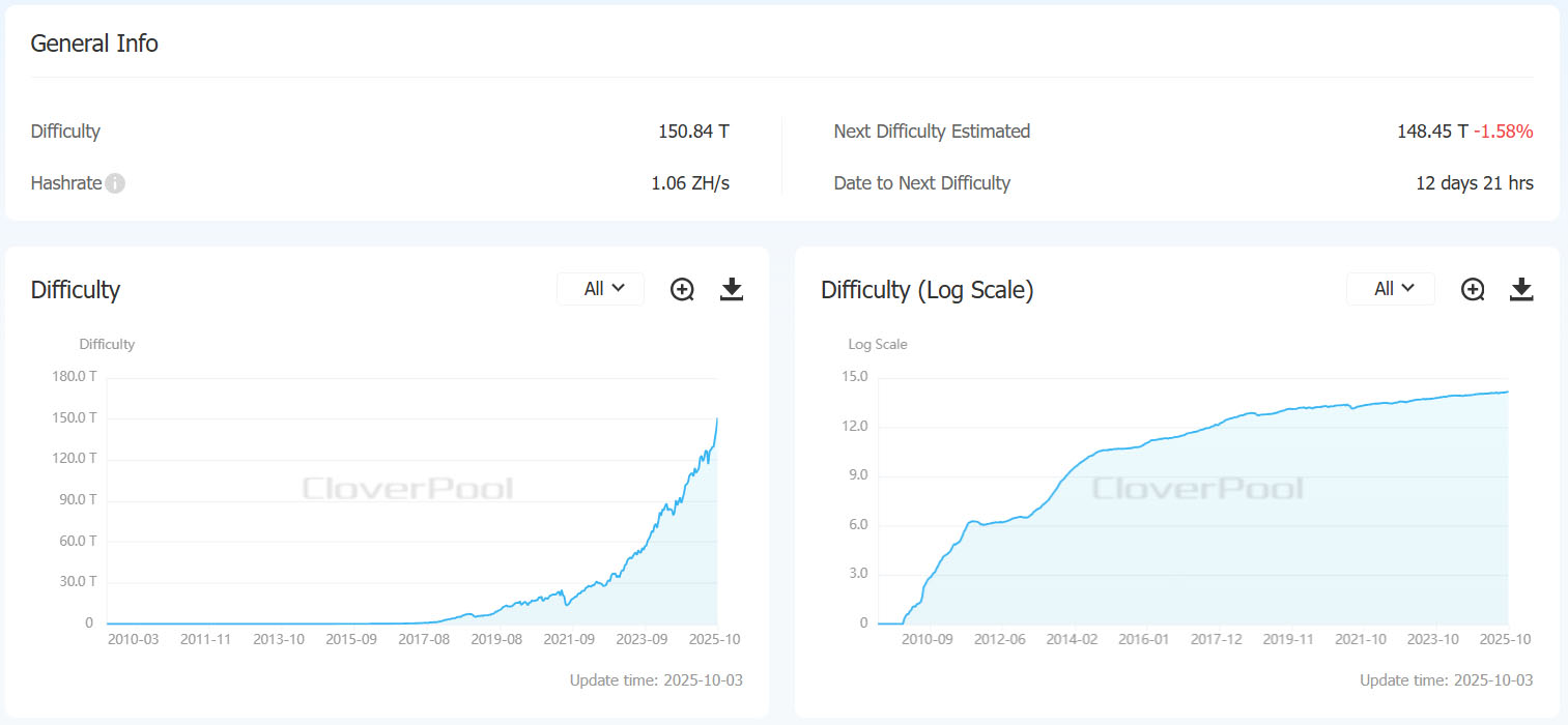 1 жовтня 2025 року складність біткоїн-майнінгу зросла на 5,97% під час перерахунку, оновивши історичний максимум. Це сьоме підвищення показника поспіль.