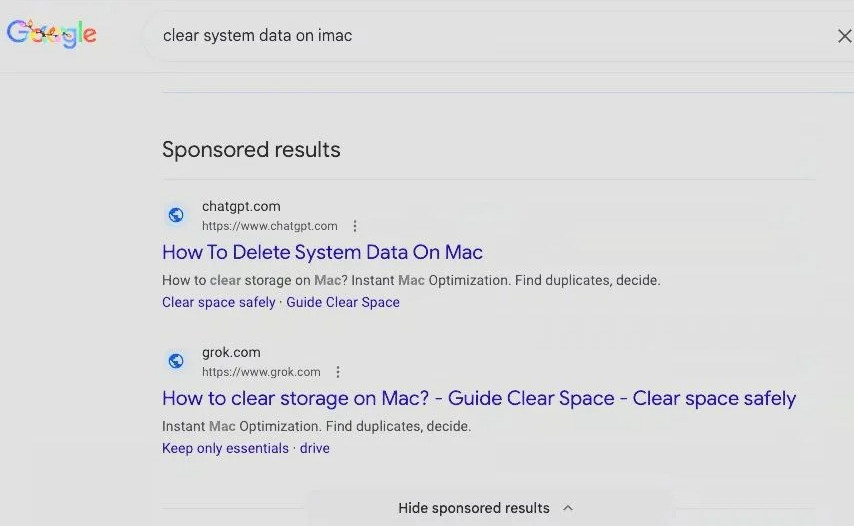 Після цього зловмисники, які створювали чати, починають платити Google, щоб ці інструкції підіймалися якомога вище у результатах пошуку. За прикладами Huntress, результати з Grok і ChatGPT у деяких випадках з'являлися навіть вище за органічну стрічку видачі.