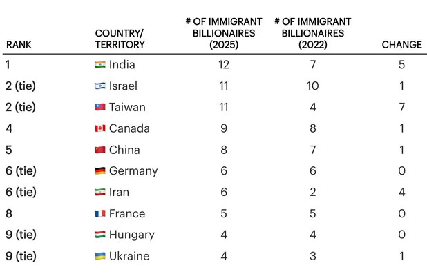 Так, у списку країн за кількістю мільярдерів-іммігрантів у США Україна посіла 9-те місце.