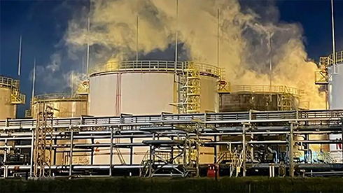 Російський Telegram-канал Astra опублікував кадри пожежі на підприємстві. Судячи з відео, полум'я повністю охопило щонайменше один резервуар.