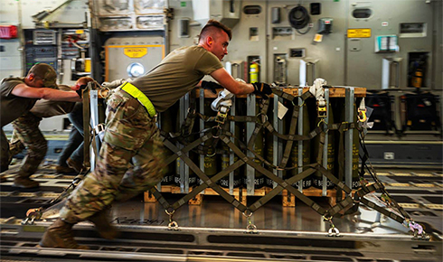 Серед зброї, що прямує до України, є 155-мм боєприпаси та високоточні керовані ракети GMLRS.