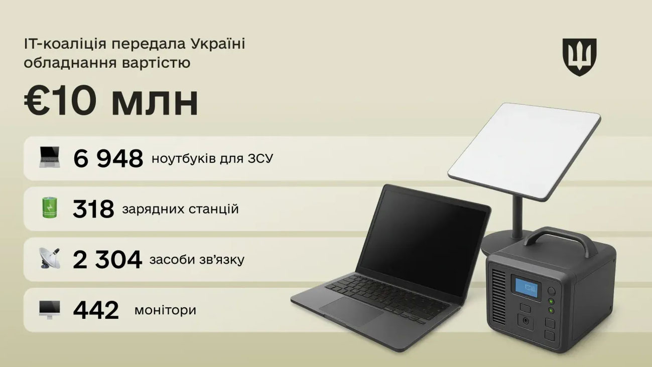 Міністерство оборони України протягом липня та серпня отримало від IT-коаліції чергову поставку обладнання загальною вартістю 10 млн, яку профінансували Люксембург, Ірландія, Бельгія та Естонія.