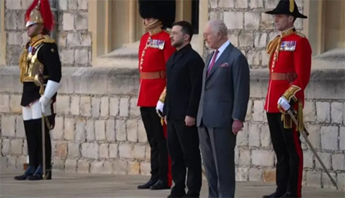 Зеленського прийняли королівським салютом, а коли він увійшов до внутрішнього дворика замку, пролунав гімн України.