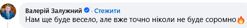 "Нам ще буде весело, але вже точно ніколи не буде соромно", - написав Залужний в коментарях під перекладом цієї статті на сторінці видання "Українська правда" у Facebook у понеділок.