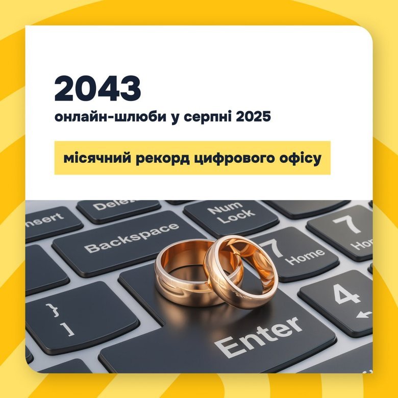 Щомісяця кількість шлюбів онлайн збільшується: у серпні 2025 року цією послугою скористалися 2043 пари, повідомили в Міністерстві юстиції.