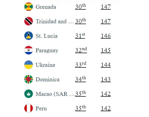 Замикають рейтинг Ірак, Сирія та Афганістан, паспорти яких дають їхнім громадянам доступ до 29, 26 і 24 країн відповідно.