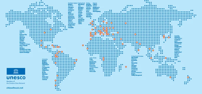 Статус Міста музики ЮНЕСКО надають містам, «які визначили креативність як стратегічний фактор сталого міського розвитку», для сприяння співпраці між ними. Міста також відзначають за сферами літератури, фільмів, гастрономії, народного мистецтва тощо.