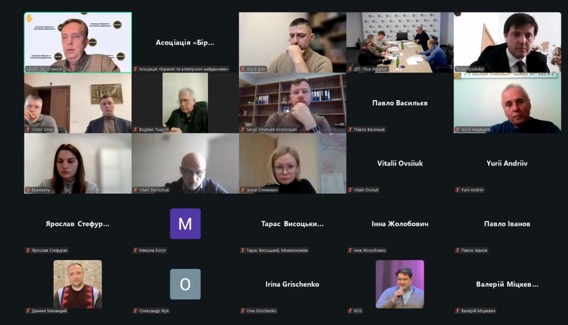 23 лютого відбулася спільна робоча нарада за участі заступника міністра економіки Тараса Висоцького, представників ДП «Ліси України», Асоціації «Біржові та електронні майданчики», ліцензованих товарних бірж, представників деревообробних, меблевих підприємств та профільних асоціацій.