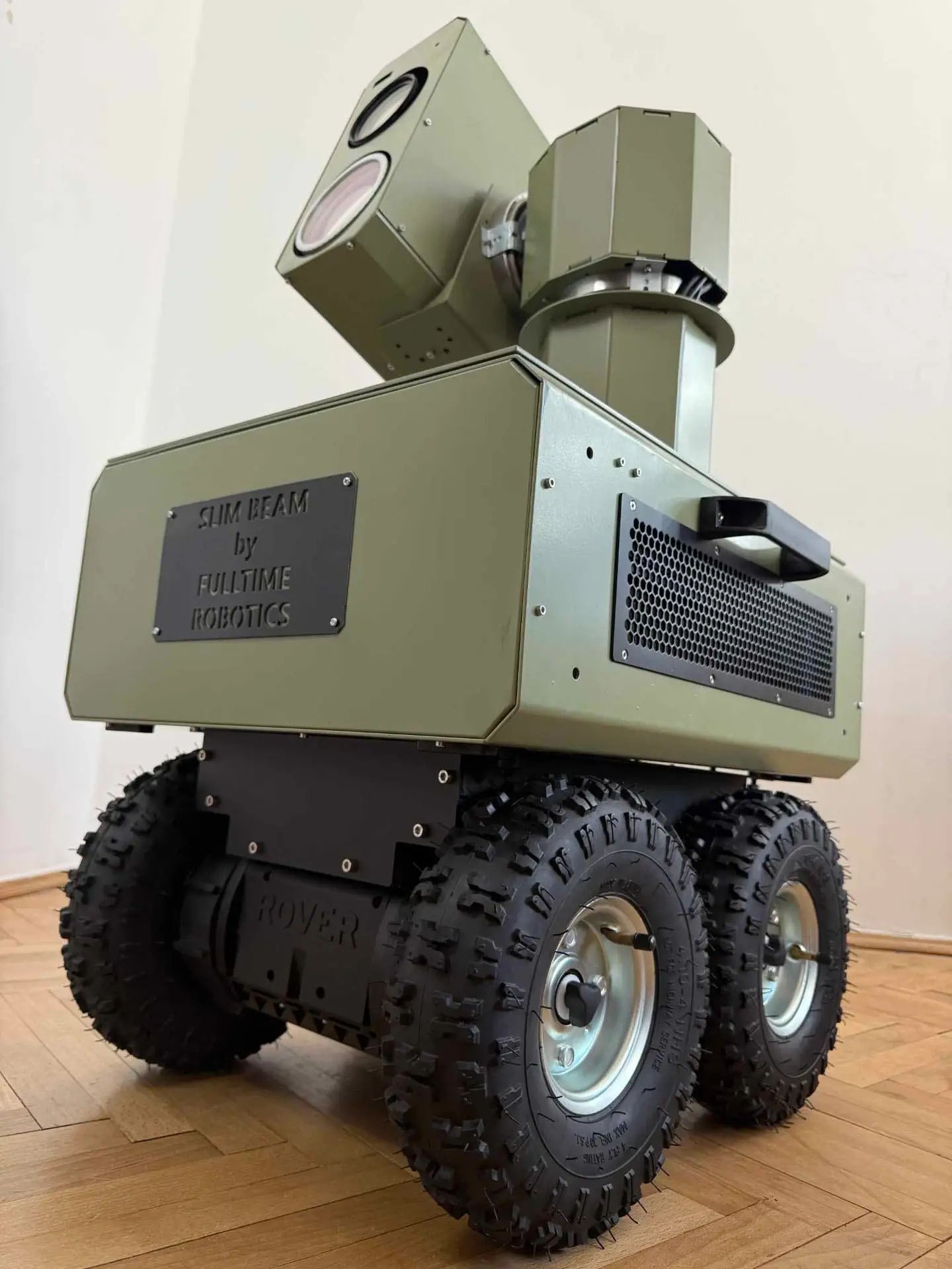 Українська компанія Fulltime Robotics розробила лазерну турель SlimBeam потужністю 1,5 кВт, яка здатна ефективно знешкоджувати дрони та інші повітряні загрози на відстані до 1 км.