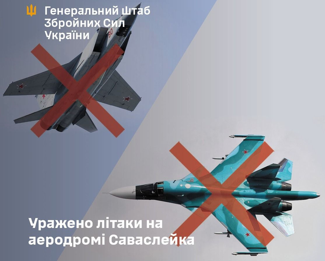 На аеродромі «Саваслейка» уражено два літаки, ймовірно, МІГ-31 та СУ-30/34