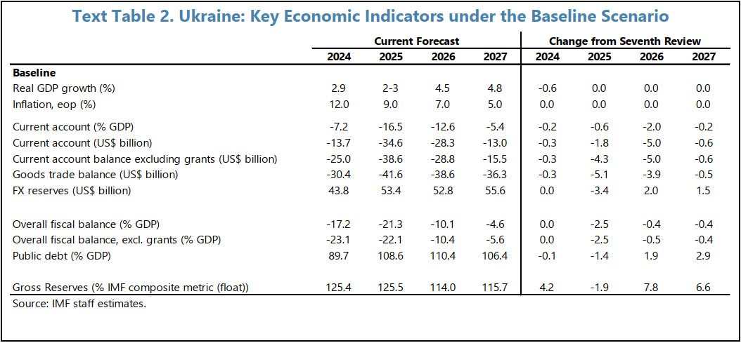 "Припущення щодо перебігу війни, що лежать в основі сценаріїв програми, залишаються актуальними, оскільки мирні переговори поки що не дали відчутних результатів", - заявили в МВФ і додали, що це створює різноспрямовані ризики щодо тривалості та інтенсивності конфлікту.