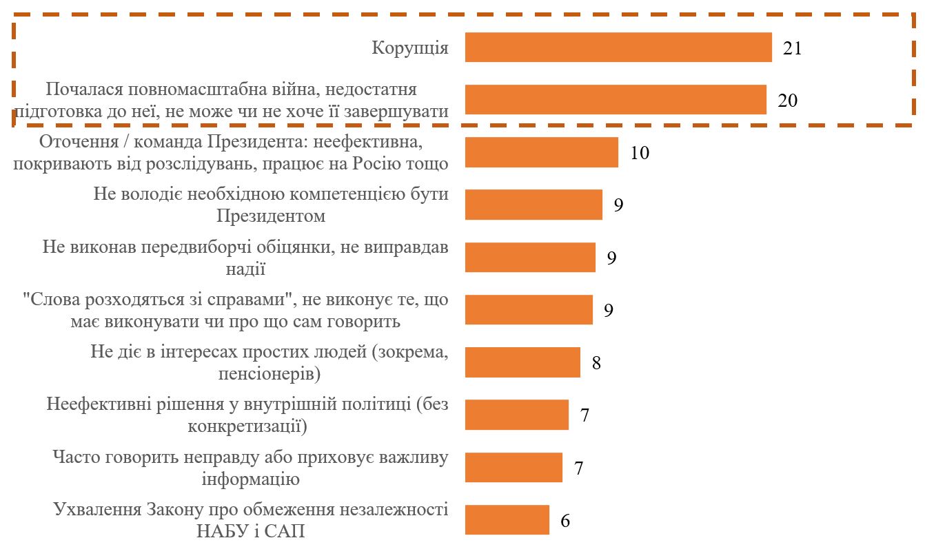 % серед тих, хто не довіряє В. Зеленському, топ-відповіді