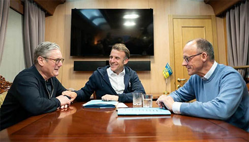 О 16:30 почнеться ще одне обговорення - з лідерами "коаліції рішучих" під головуванням Німеччини, Британії та Франції.