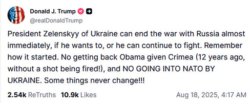 Зазначимо, цього ж дня Зеленський прибув до до Вашингтона для зустрічі з Трампом. Разом з українським лідером до США летять кілька європейських лідерів. Проте, за даними ЗМІ, спершу у Зеленського відбудеться двостороння зустріч лише з Трампом. Опісля буде спільна зустріч з європейцями.