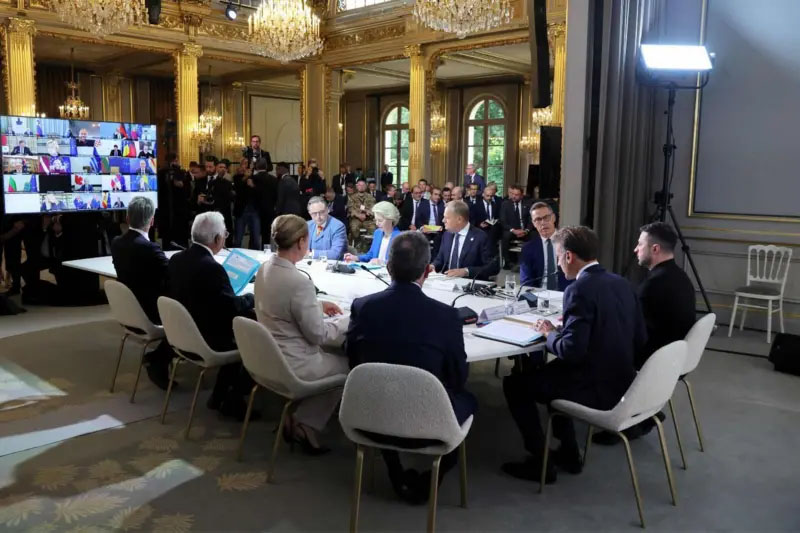 Особисто на зустріч до Парижа прибули шестеро лідерів країн ЄС - зокрема Фінляндії, Данії та Польщі - а також керівництво Євросоюзу і президент Зеленський.