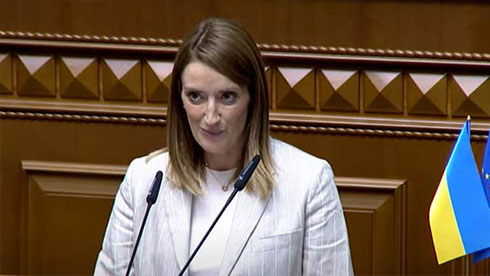 "Ми тут, з вами, і ми тут для того, щоб залишитися. І ми також кажемо: ви ніколи не будете йти наодинці. Коли настане мир... ми будемо продовжувати стояти з вами, коли ви будете відновлюватись та відбудовуватись", - пообіцяла президентка Європарламенту.